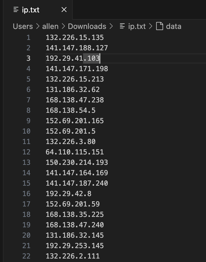 因为我们只提取了端口为443的IP,因此只需用相关csv的软件将IP复制出来,保存为ip.txt即可。