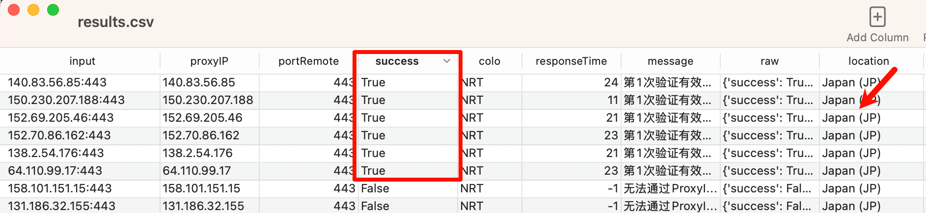 'input', 'proxyIP', 'portRemote', 'success', 'colo',