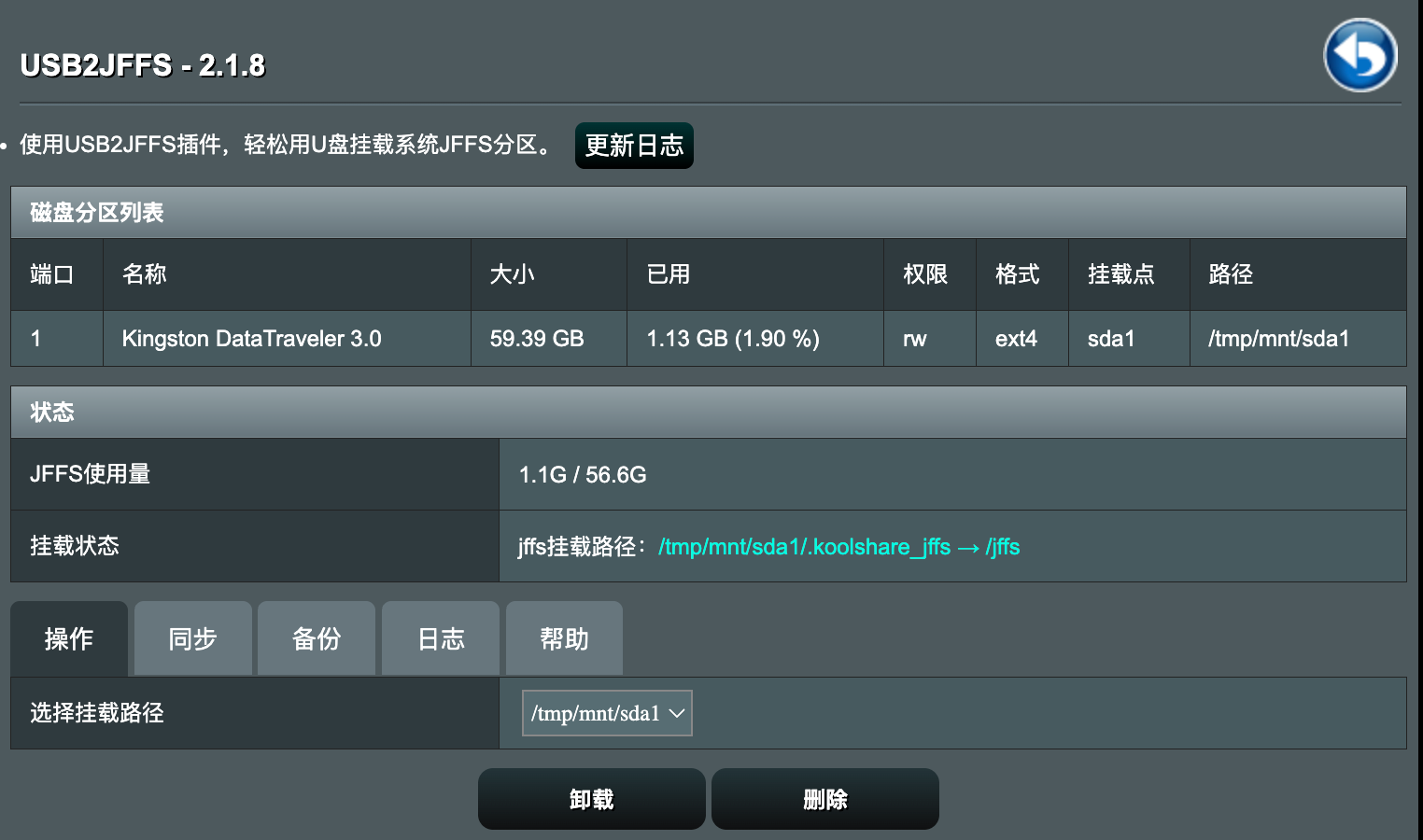 来到软件中心,安装 USB2JFFS: